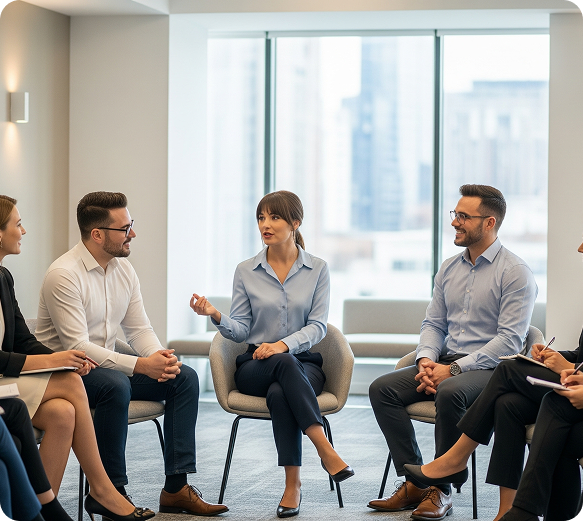 Imaginez un espace où des personnes se réunissent pour s’entraider sur leurs défis professionnels ou personnels.
